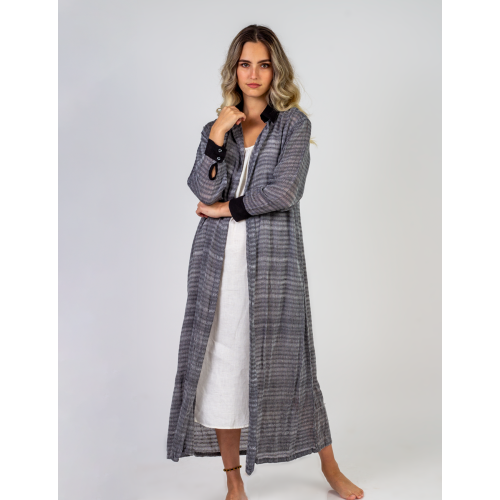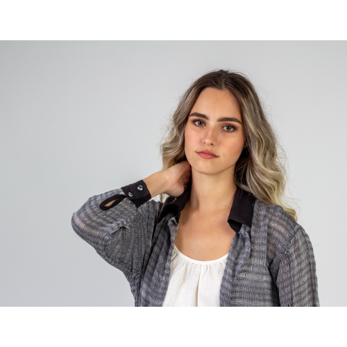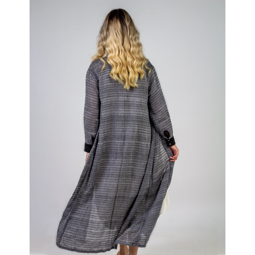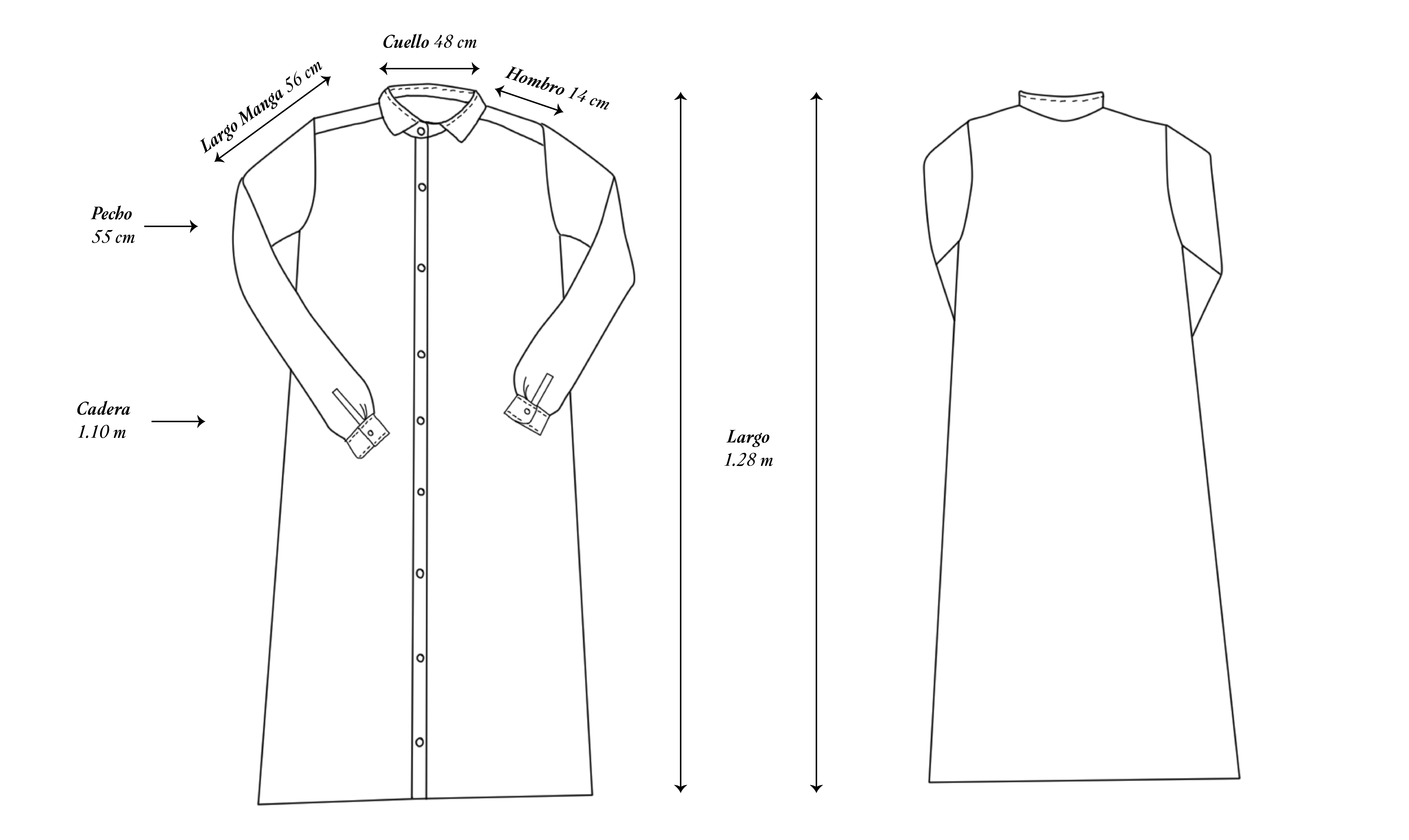 Camisa larga sin botones con cuerpo de gasa de algodon elaborada en telar de 4 pedales y puños y cuello de lino 100%
