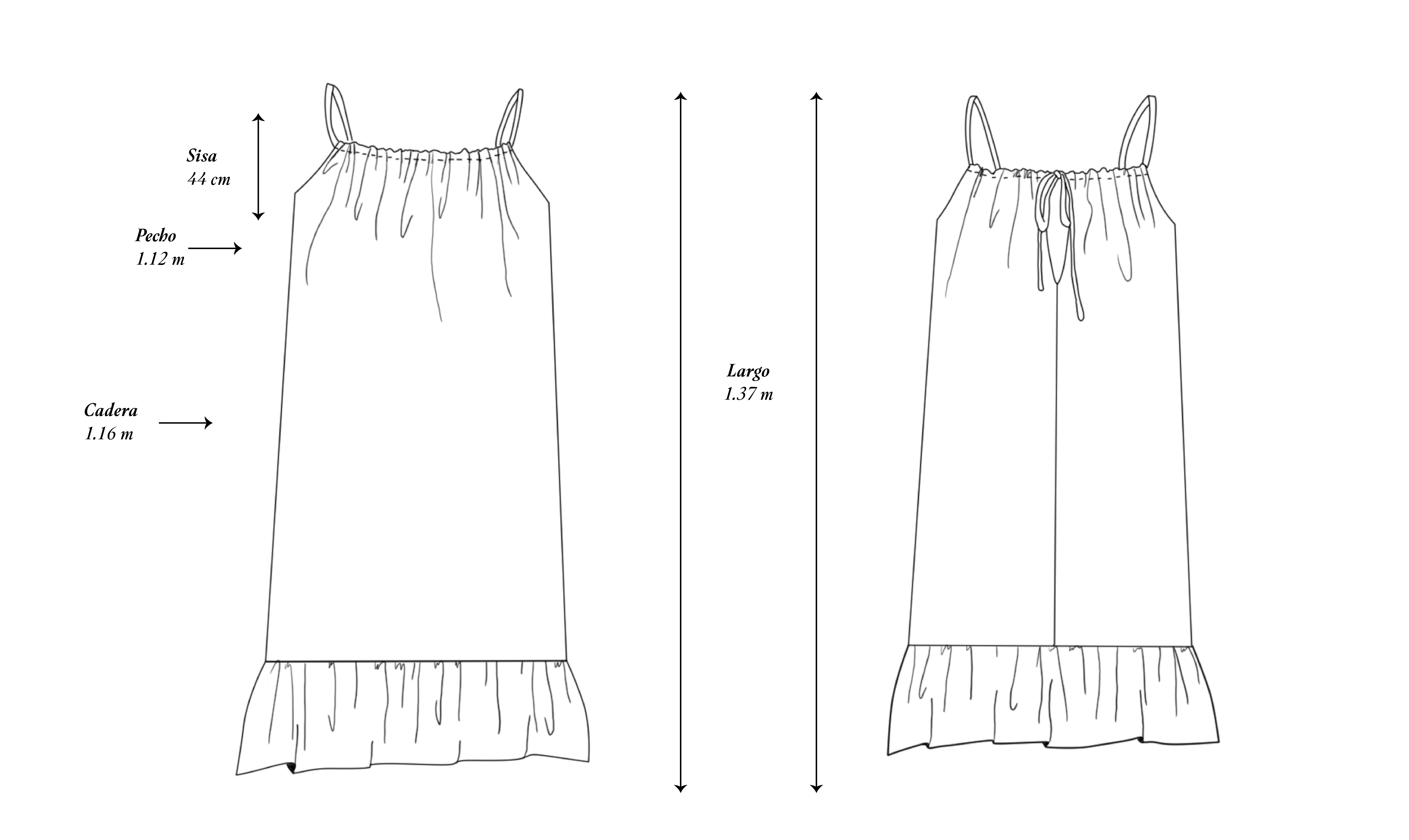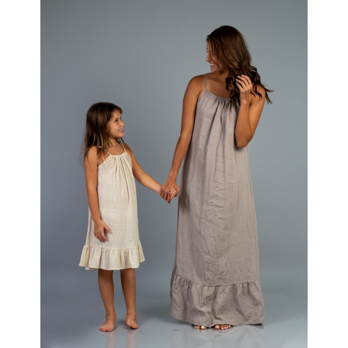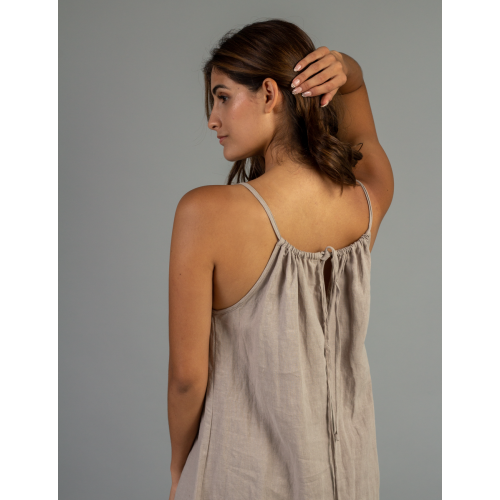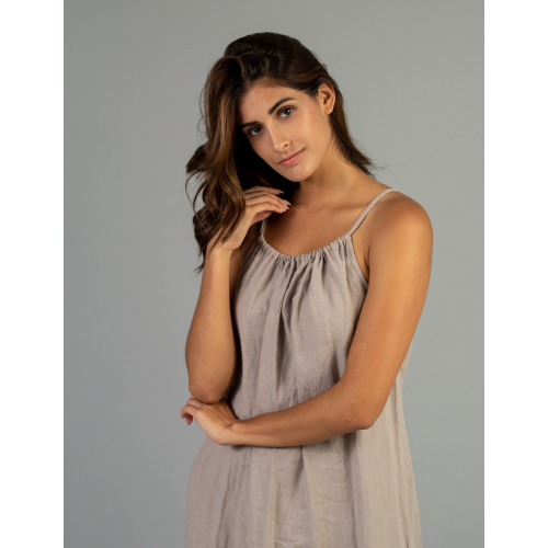 Vestido Largo sin mangas ajustable con volado en la parte inferior/ 100% lino