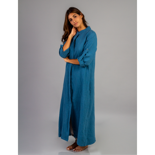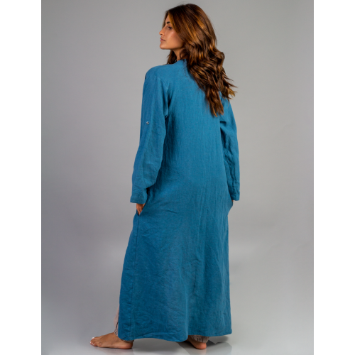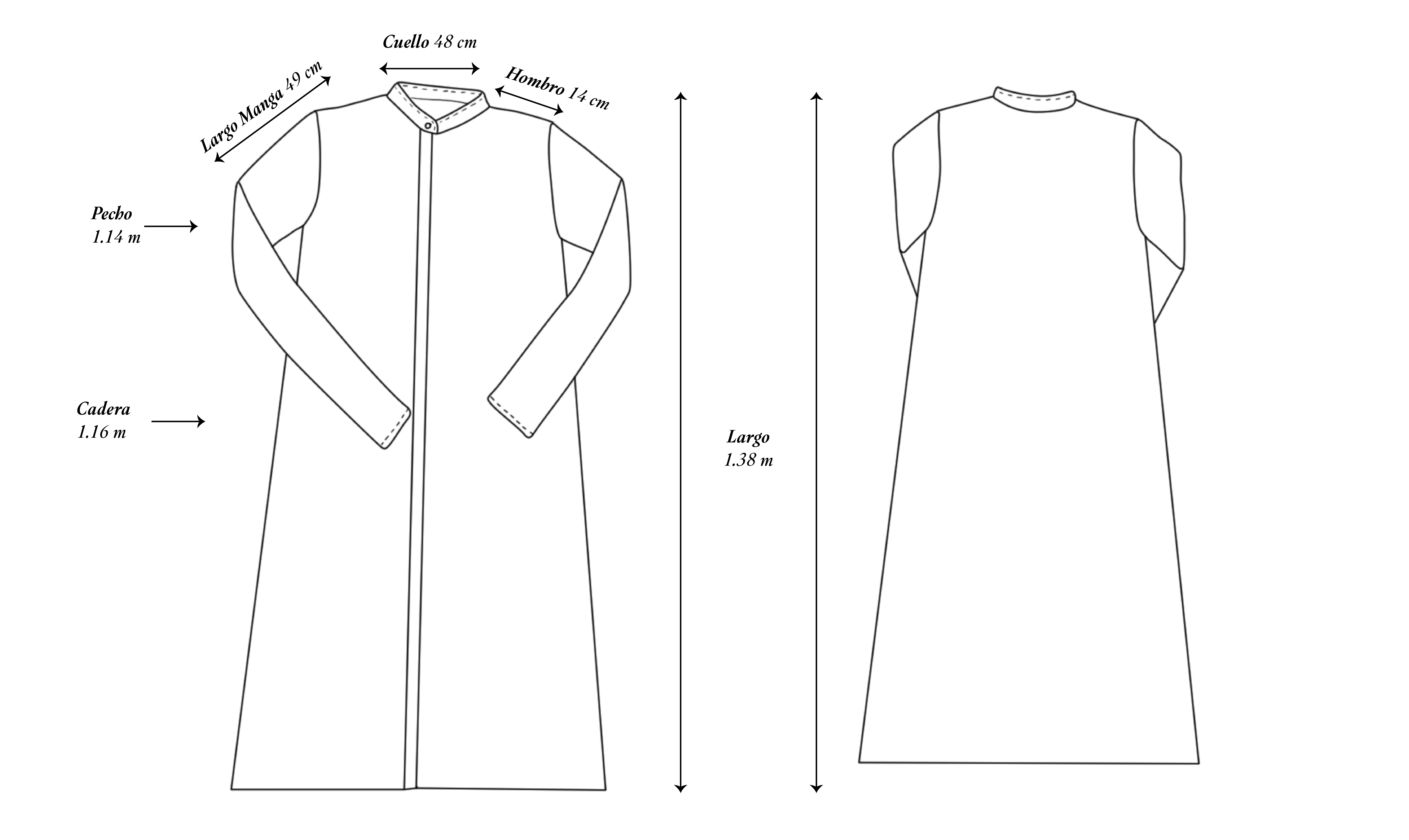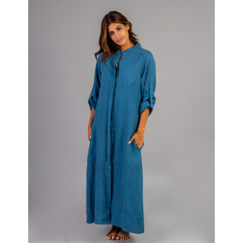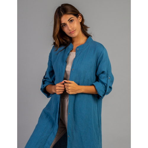 Vestido/ Abrigo cuello mao con bolsas y con magas largas ajustables a 3/4 de largo 100% lino