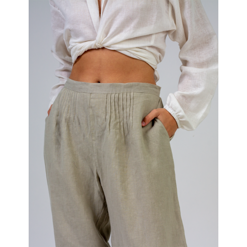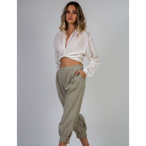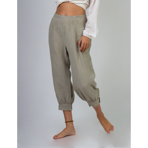 Pantalon 3/4 de largo con alforzas y elastico en la cintura/ 100% lino