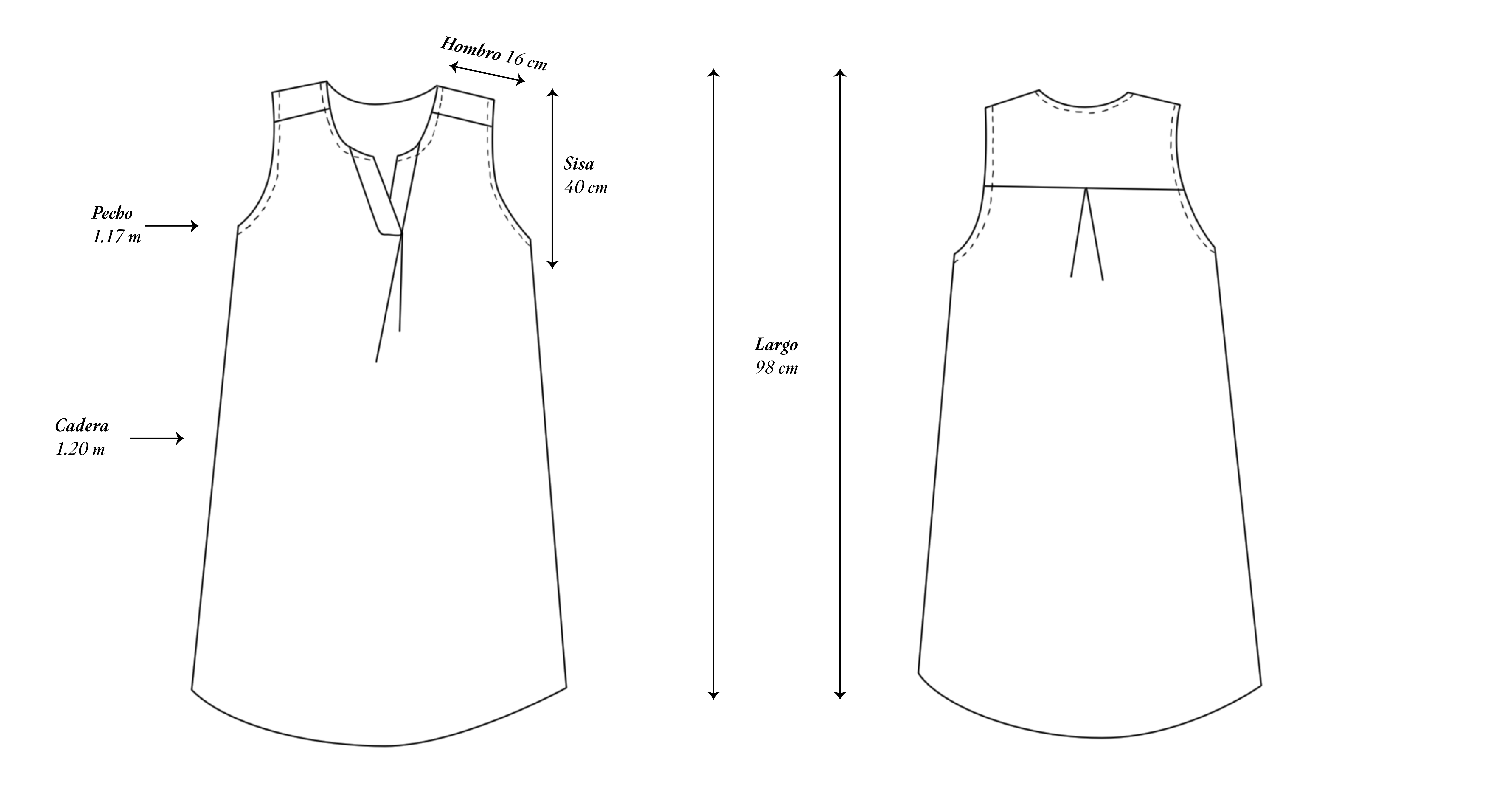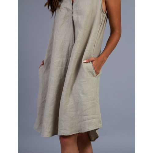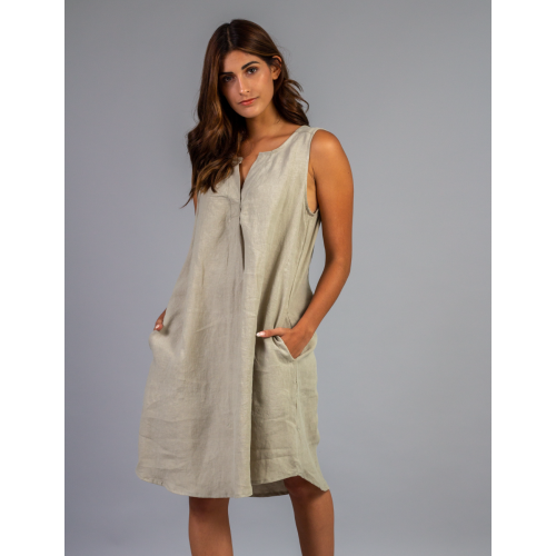 Vestido sin mngas corto cuello en V con bolsas /100% lino