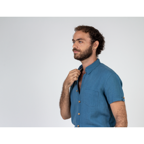 Camisa clásica mangas cortas. Slim Fit. 100% lino