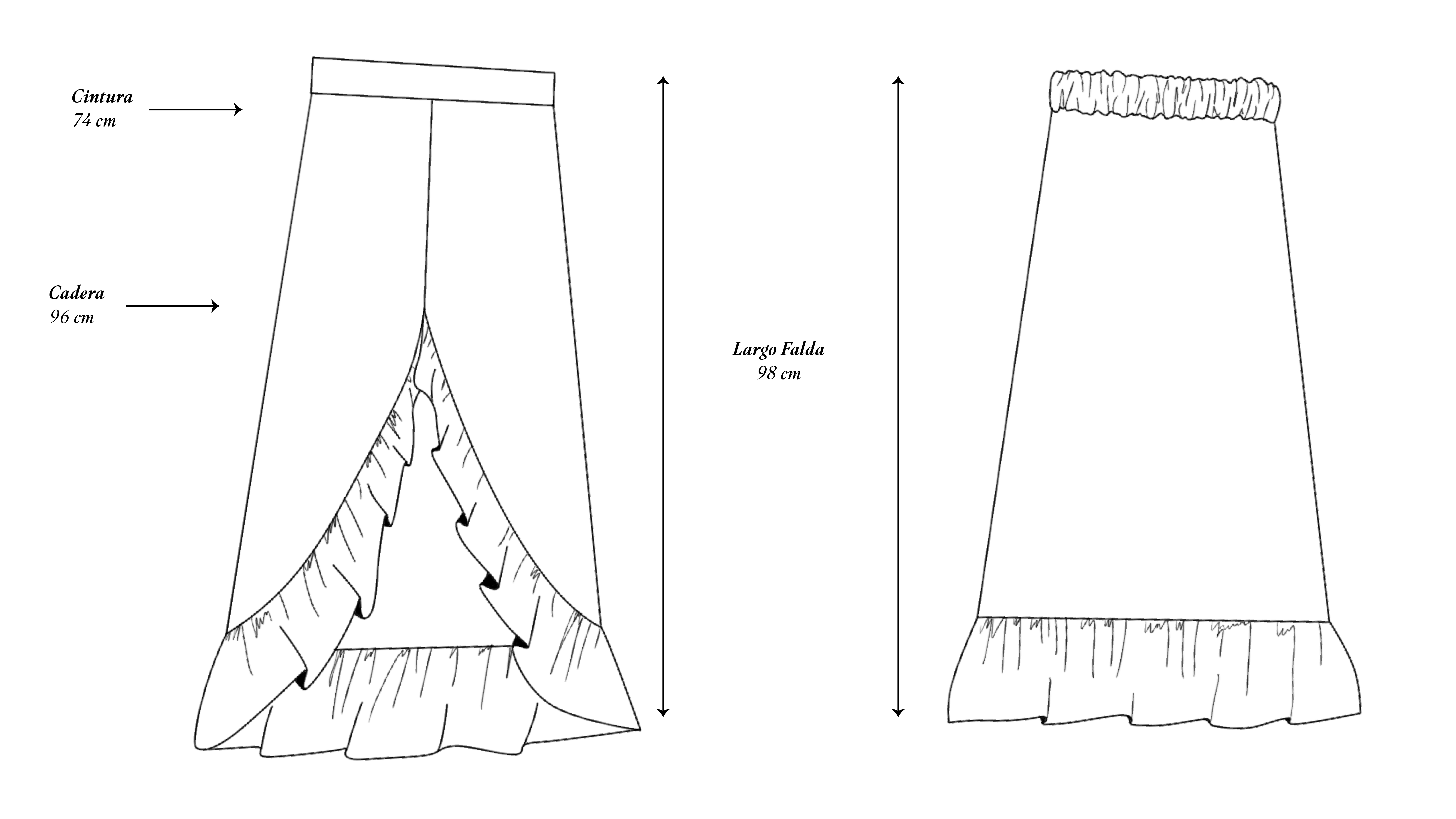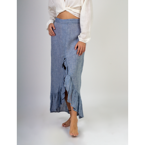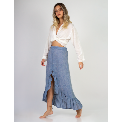 Falda larga con volados y elastico en la cintura/ disponible en 100% lino o 80%lino con 20% seda